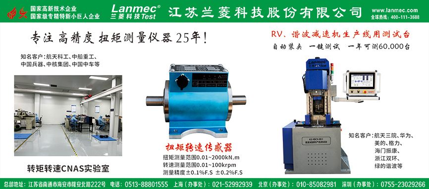 江蘇蘭菱科技股份有限公司成立于2002年,國家級高新技術企業、江蘇省扭矩傳感器研發中心、江蘇省企業研究生工作站。 公司主要產品: 轉矩轉速傳感器(扭矩傳感器):范圍0.01-2000KN.m,可以定制防爆、非標等;各類動力測試設備:電機測試臺、減速機測試臺、電動機測試臺、執行器測試臺、蝸輪箱測試臺、閥門扭矩測試臺、鉆機測試臺、液壓馬達測試臺等;各類模擬負載磁粉制動器、磁滯制動器、電渦流制動器、電力測功機等;測試儀表及軟件的研發與生產。 蘭菱科技通過了ISO9001、ISO14000、ISO45001體系認證,歐盟CE認證,擁有自營進出口權,強大的研發能力、全產業鏈的制造能力、及時售后的保障能力。